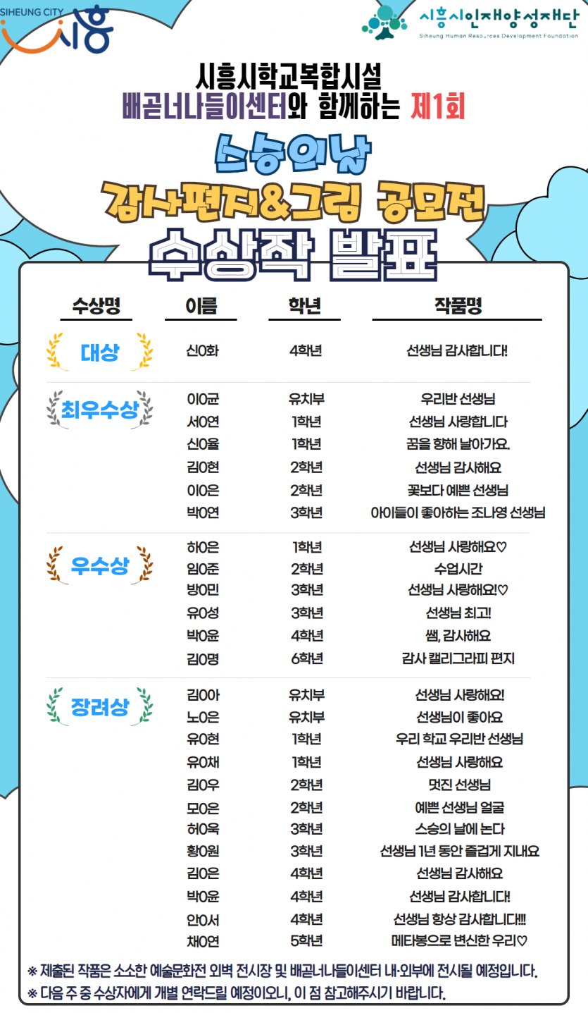 [공지] 배곧너나들이 스승의날 감사편지&글그림 공모전 결과발표