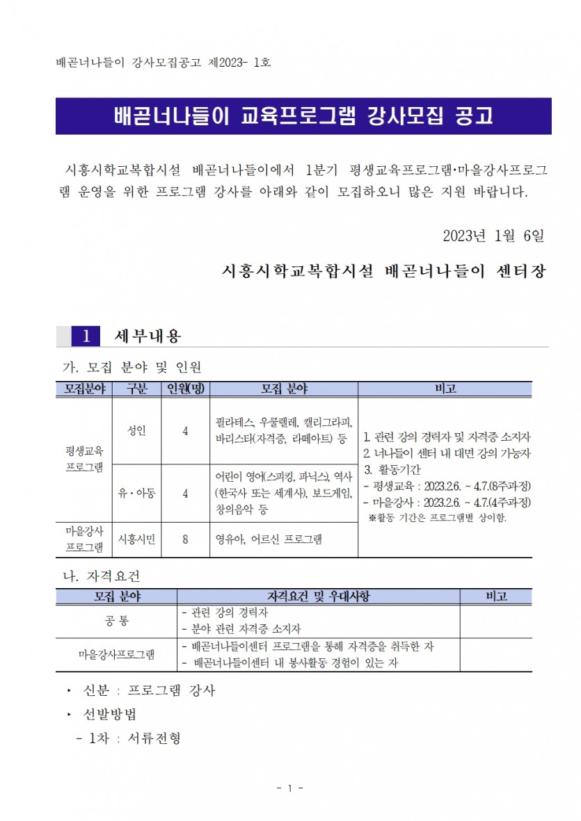 [공지] 2023년 배곧너나들이 1분기 교육프로그램 강사 모집 공고