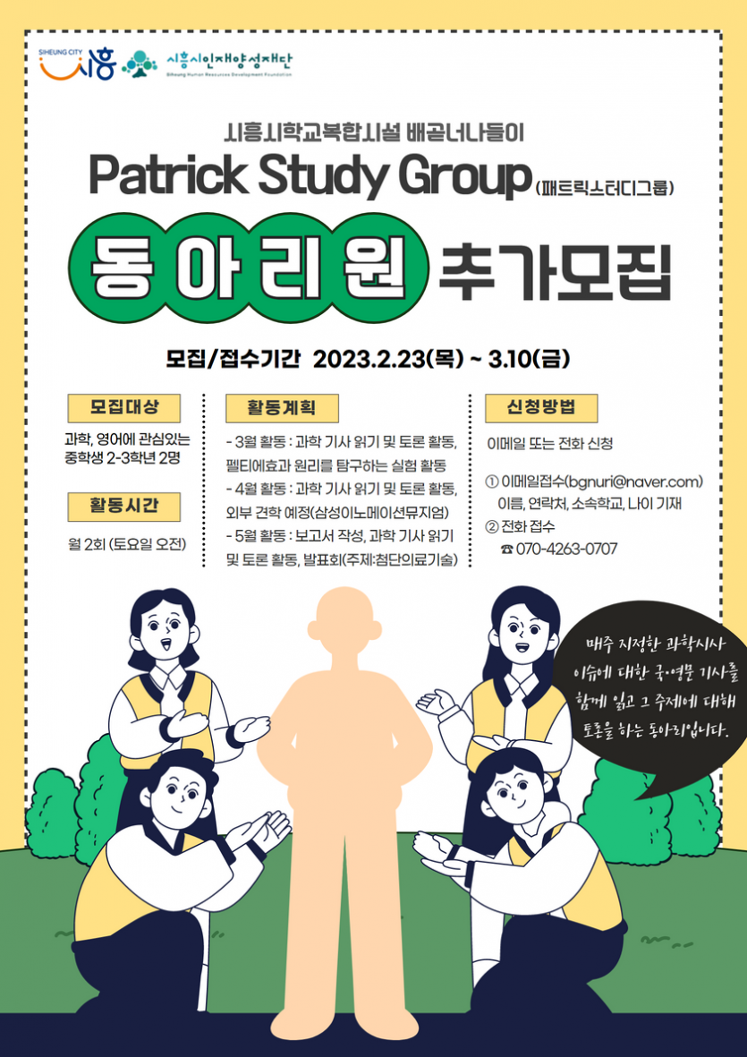 [안내] 2023년 배곧너나들이 학습동아리-패트릭스터디그룹 동아리원 추가 모집