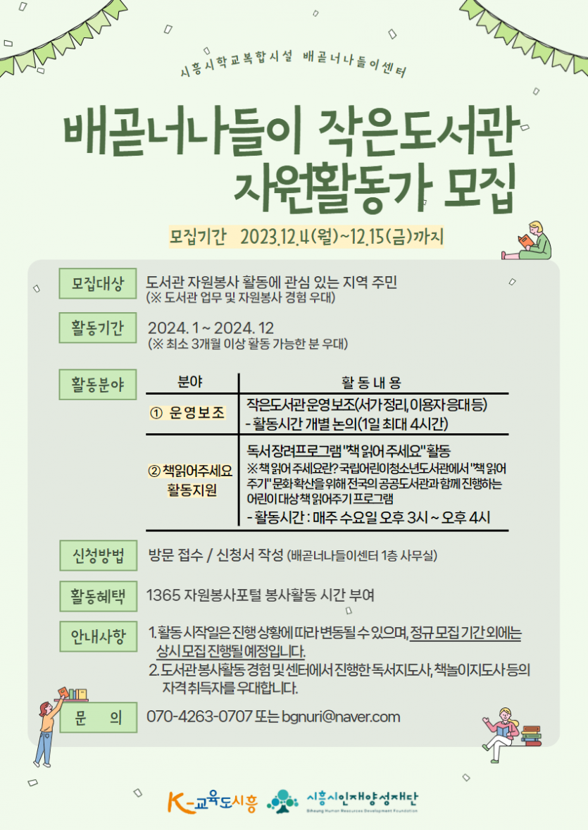 [안내] 배곧너나들이센터 도서관 자원활동가 모집 안내