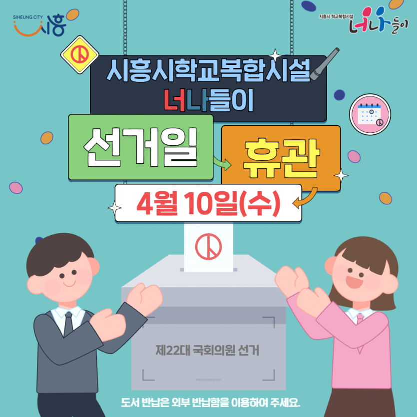 [안내] 시흥시학교복합시설 너나들이 선거일(4/10) 휴관 안내