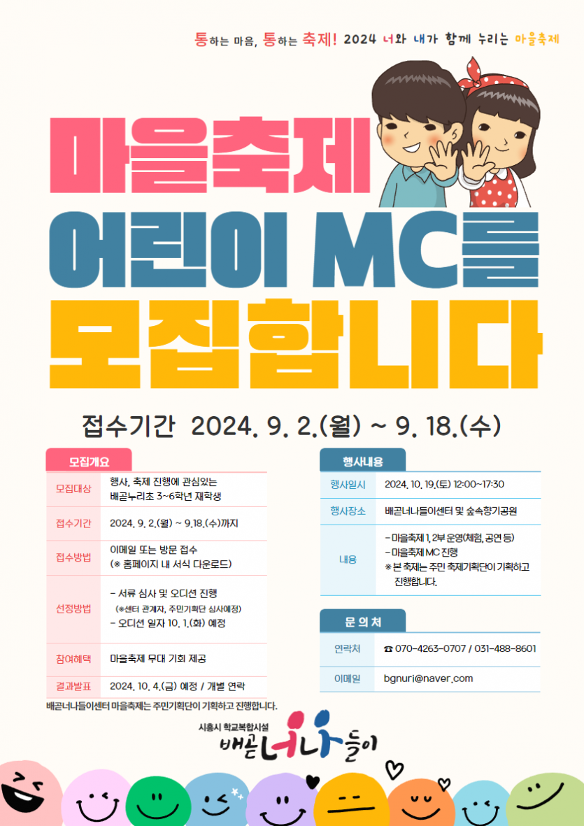 [안내] 배곧너나들이센터 마을축제 어린이 MC 모집