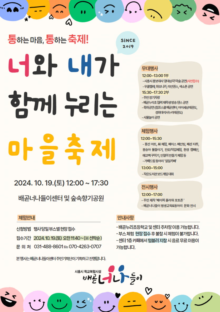 [안내] 배곧너나들이센터 10월 19일 행사 안내 '너와 내가 함께 누리는 마을축제'