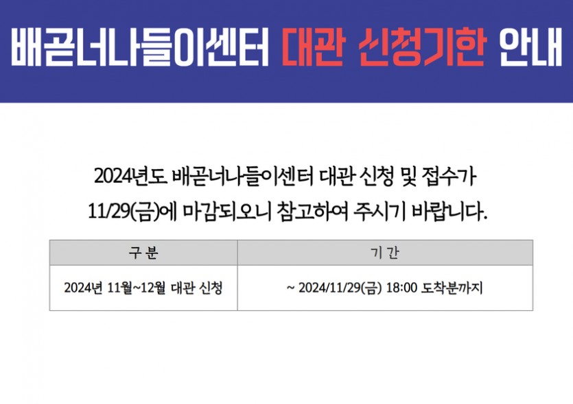 [공지] 배곧너나들이센터 대관 신청기한 안내(~11/29)