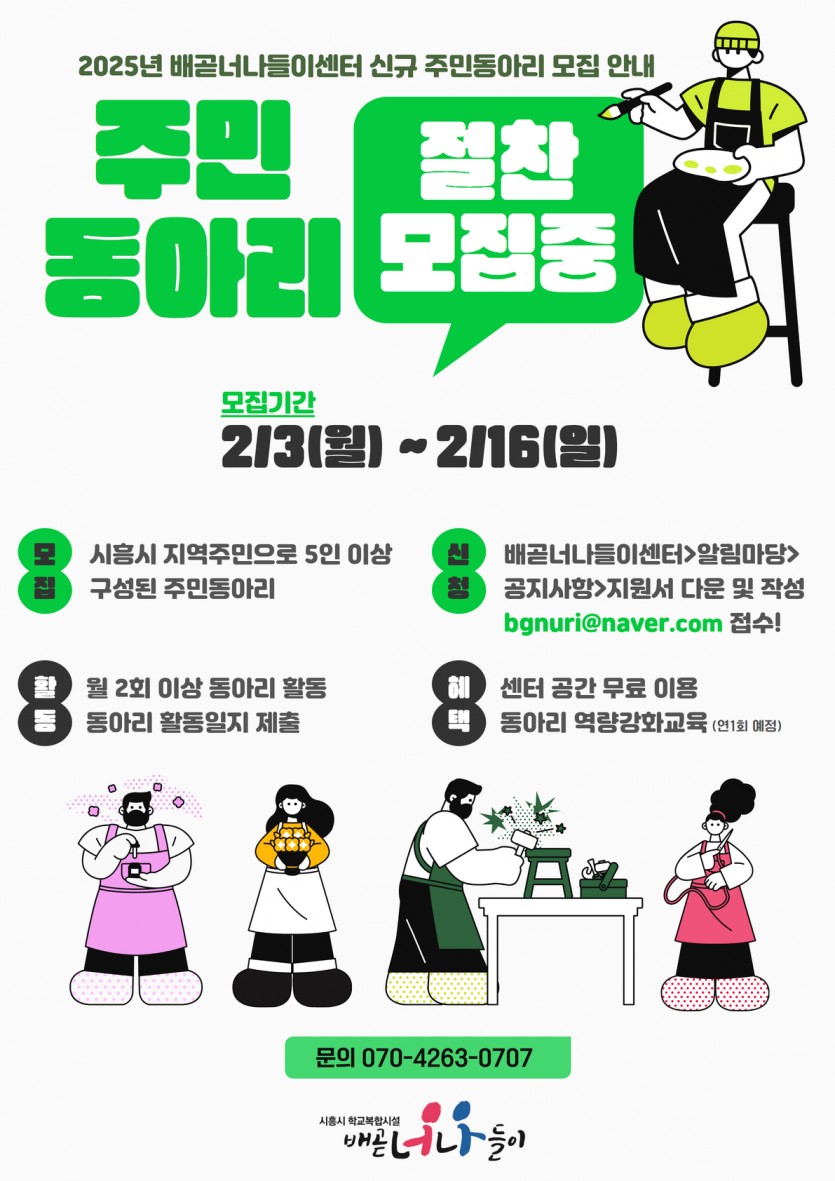 [공지] 2025년 배곧너나들이센터 신규 주민동아리 모집 안내