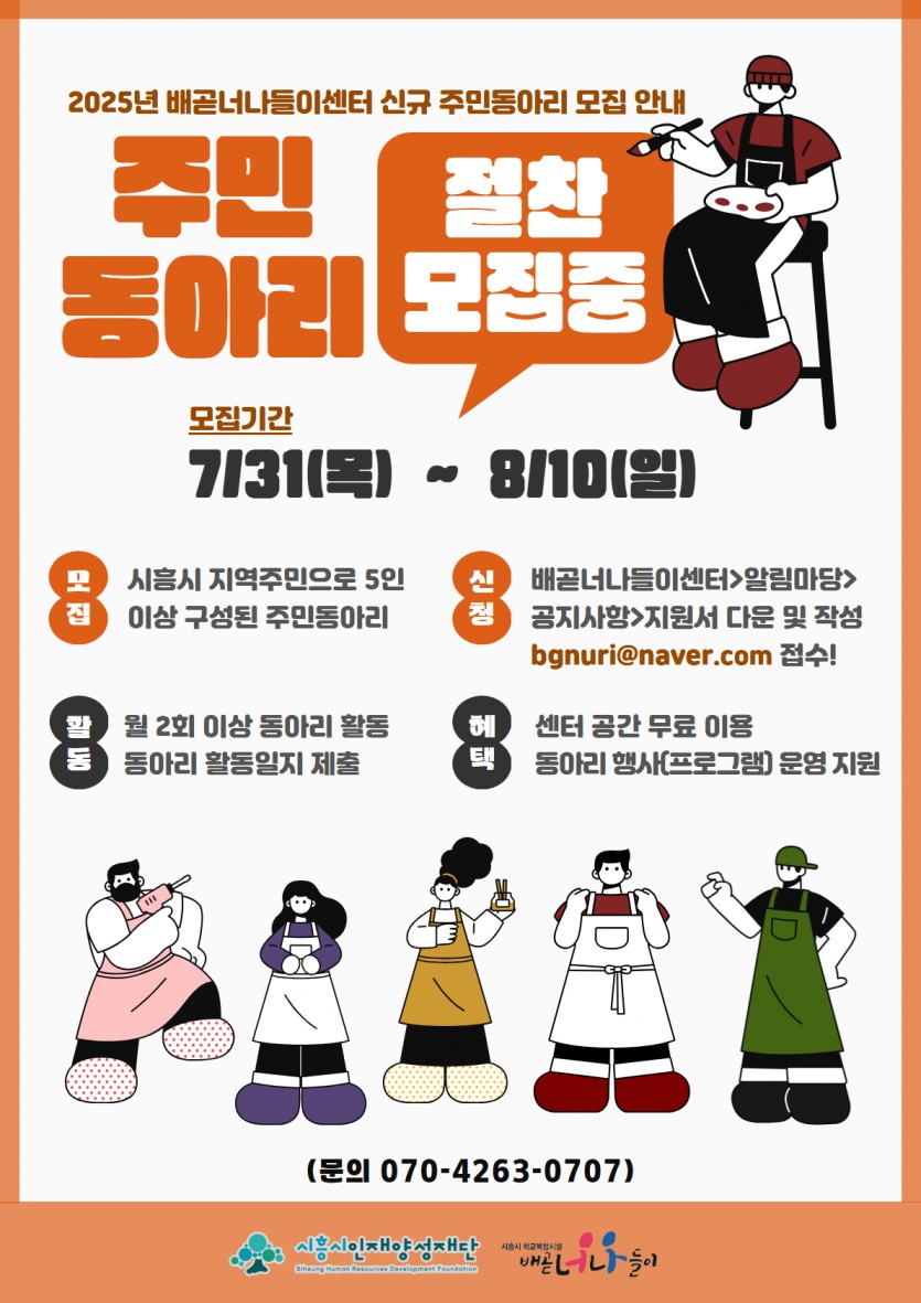 [공지] 2025년 하반기 배곧너나들이센터 신규 주민동아리 모집 안내