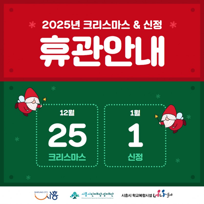 [공지] 시흥시 학교복합시설 너나들이센터 12월 휴관일 안내