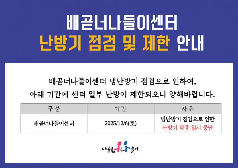 [공지] 배곧너나들이센터 냉난방기 점검 안내(12/6)