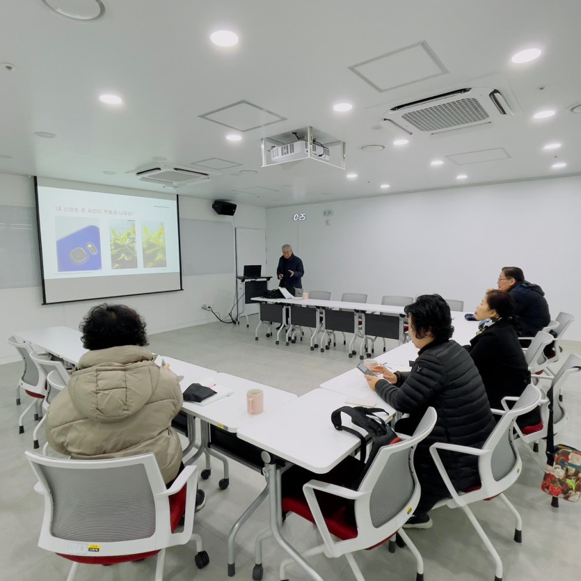 <사진촬영 취미반>의 첫 수업은 스마트폰 기본설정과 카메라 잡는 자세를 배우는 시간이었습니다.