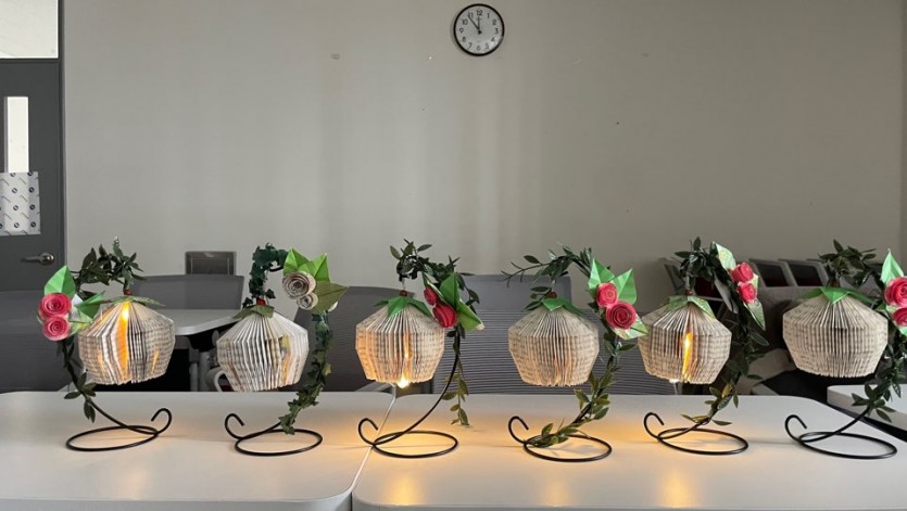 헌 책을 활용하여 초롱꽃 스탠드를 만들어보았습니다.