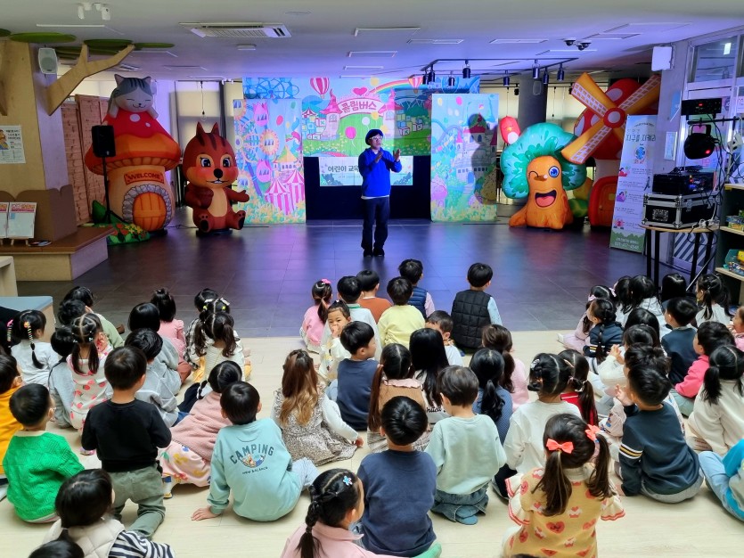 율동체조, 마술쇼, 포토존, OX퀴즈 시간을 구성하여 아동 관객들이 적극적으로 참여할 수 있는 공연이었습니다.