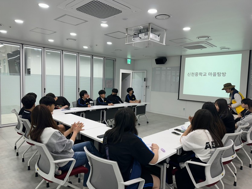 신천중학교 학생들이 마을탐방을 위해 소래너나들이센터를 방문했습니다.