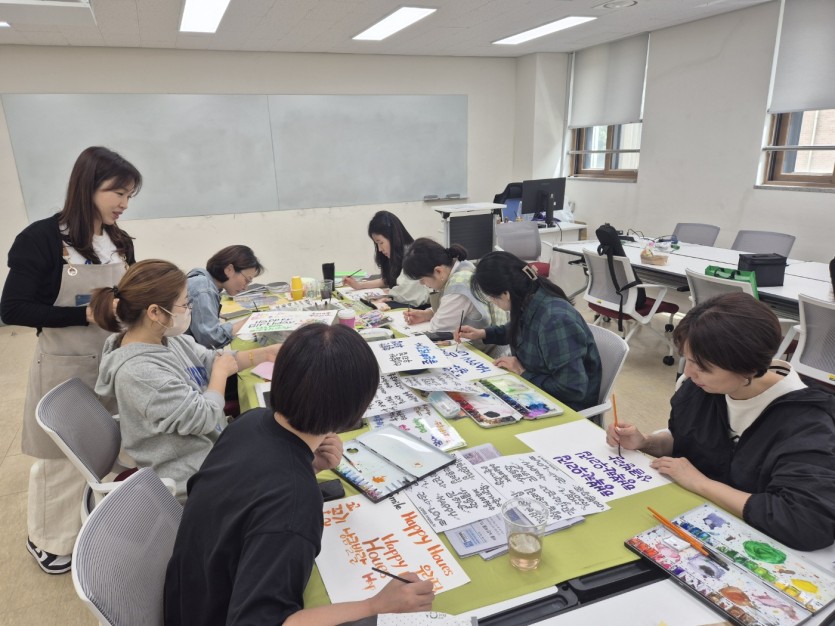 캘리캐리 동아리는 캘리그라피와 비슷할 수 있지만 다른 특성을 지닌 POP에 대해 알아보고 작품을 만들어보는 시간을 가졌구요.