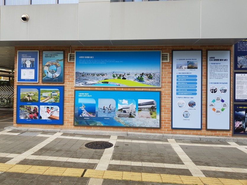 이번 외벽전시 주제는 시화호 변천사를 통해 환경보호의 필요성과 이를 실천하는 시흥시의 밝은 현재와 미래를 그려보았습니다.