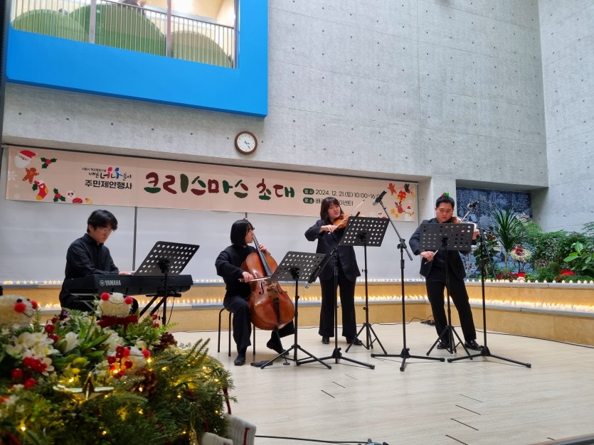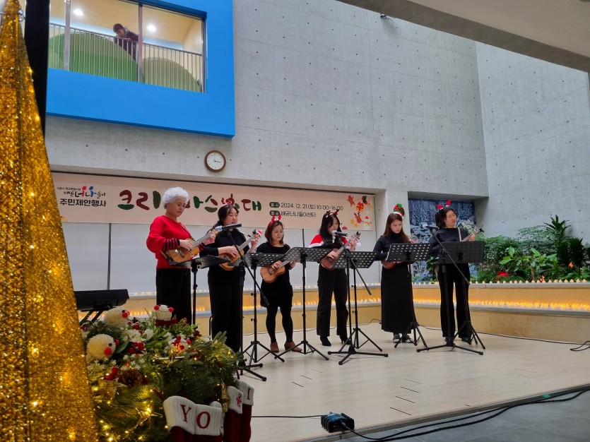 평생교육프로그램 ‘우쿨렐레 낭만교실’ 강사와 수강생이 아이들을 위해 준비한 노래부터 캐롤 멜로디를 선사한 피아노 4중주 공연까지 이어졌답니다.