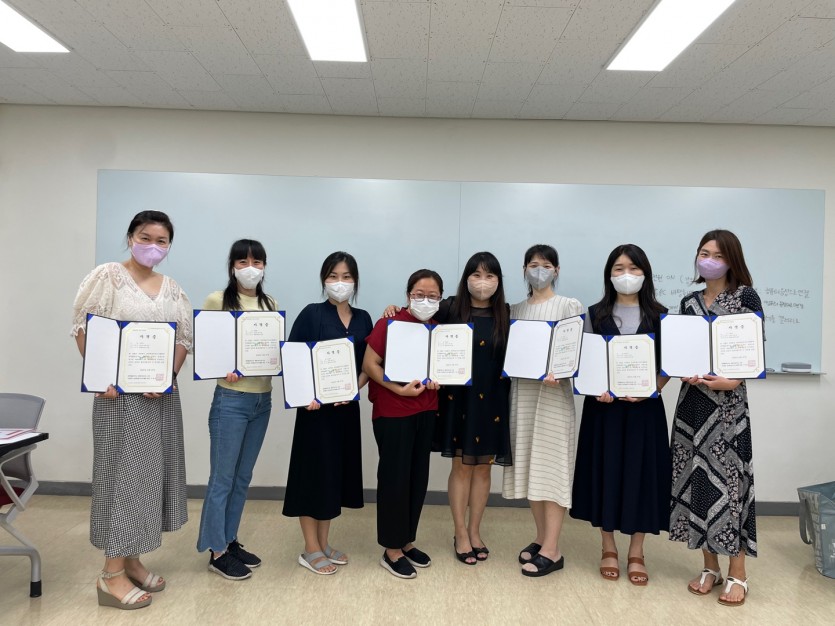 한지선 강사님과 수강생 분들의 열정으로 아홉 분 모두 <책놀이지도사> 자격증을 취득하였습니다.