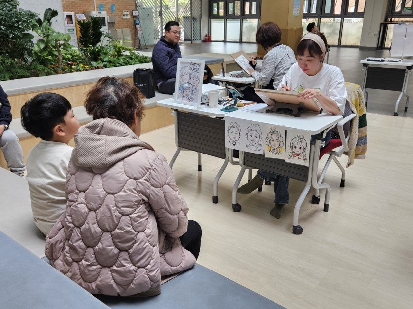 작가님들의 연필 끝에서 캐리커쳐가 뚝-딱 완성