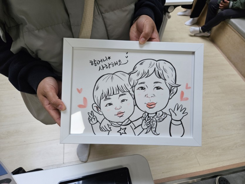 가족 캐리커쳐를 위해 아빠, 엄마, 아이들 온 가족이 총출동했어요!