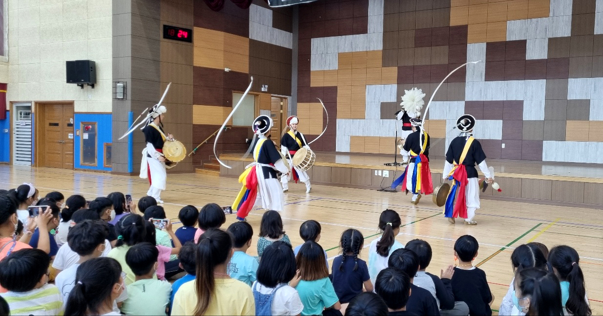 풍물놀이는 초등학교 1학년 친구들도 2학년 친구들과 함께 관람을 했는데요!