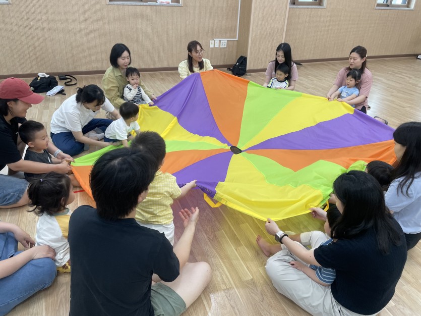 클래식 음악에 맞추어 낙하산의 펄럭임과 바람을 느끼며 엄마아빠와 친구들과 교감 쌓기도 했어요