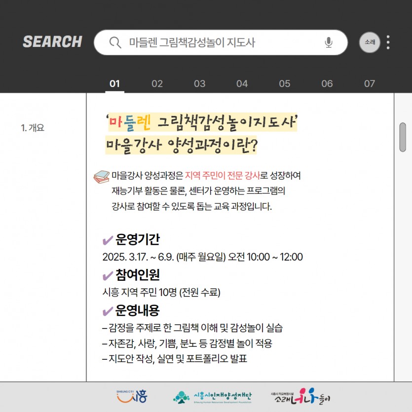 소래너나들이 마을강사양성과정 활동 후기 및 간담회 결과보고