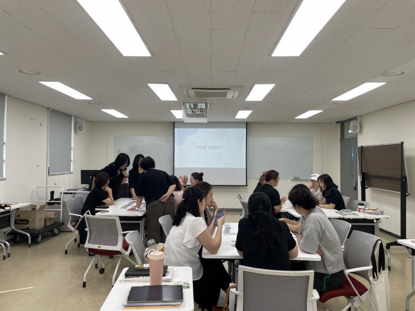 카드와 친해지다 보니 자리에서 벌떡 ! 일어나 참여해 주시는 수강생분들,