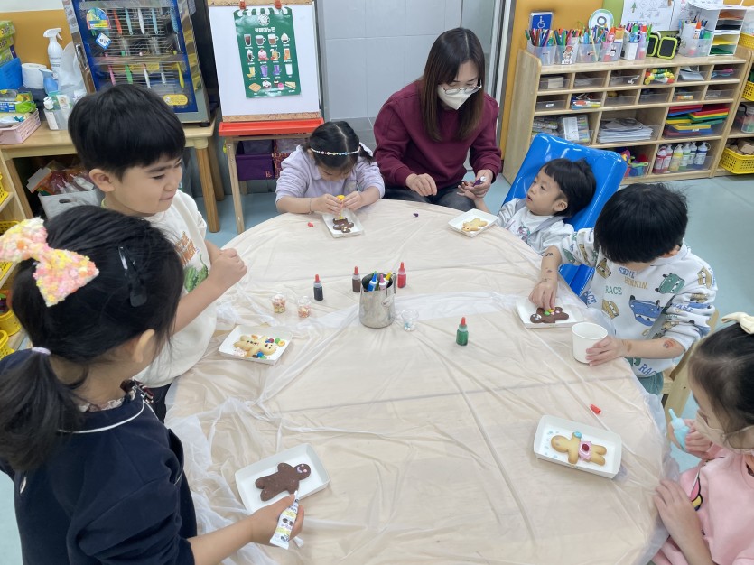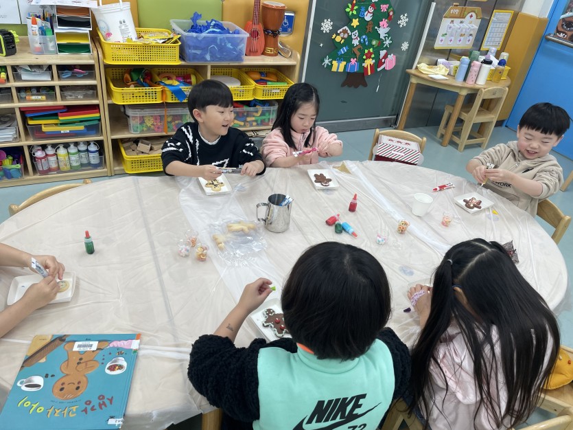 진저맨과 인사를 나누고 <생강 과자 아이>를 함께 읽는 6세반 친구들