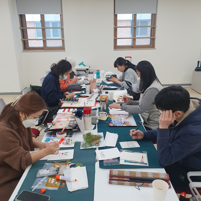 캘리그라피 평생교육프로그램을 통해 동아리가 결성되어 다양한 캘리 작품에 도전하는 '캘리캐리' 동아리