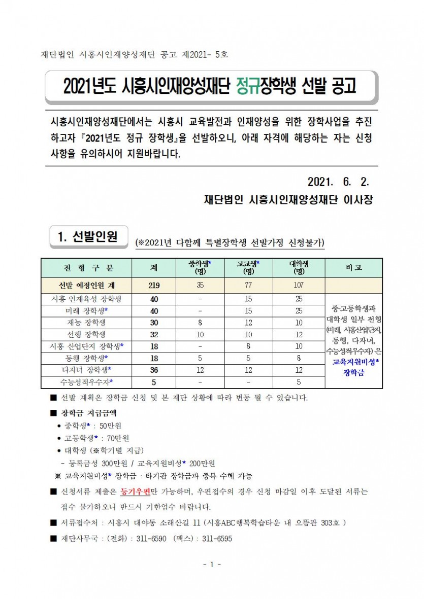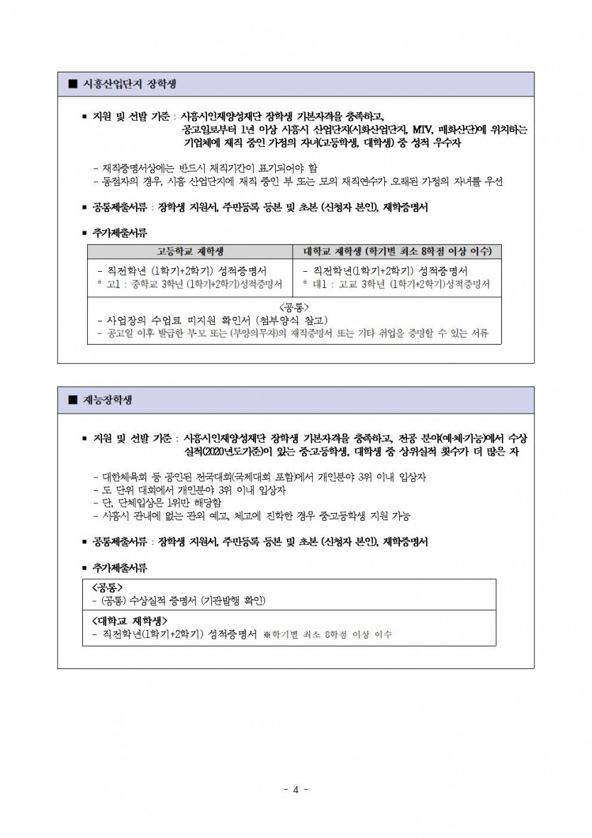 시흥시 교육발전과 인재양성을 위한 장학금입니다. |