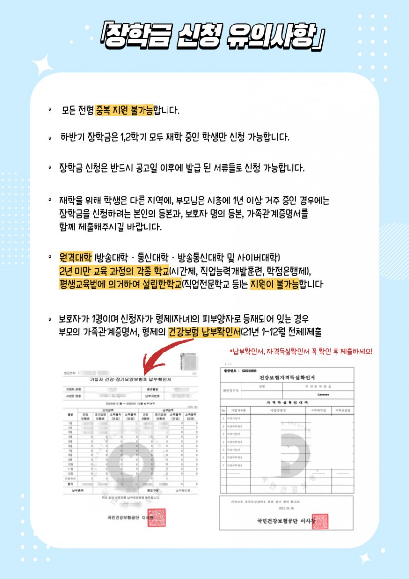 장학금 신청 유의사항
