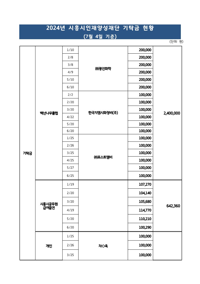 2024년 장학기금 적립 현황(8월 6일 기준)