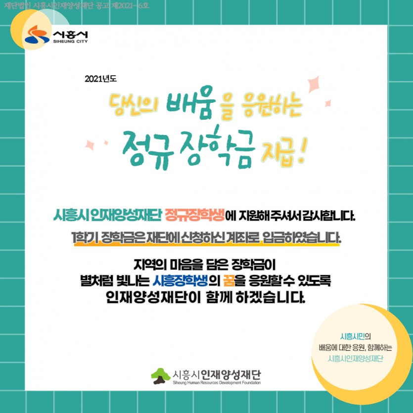 [공지] 2021년도 정규장학생 (상반기)장학금 지급 완료 안내