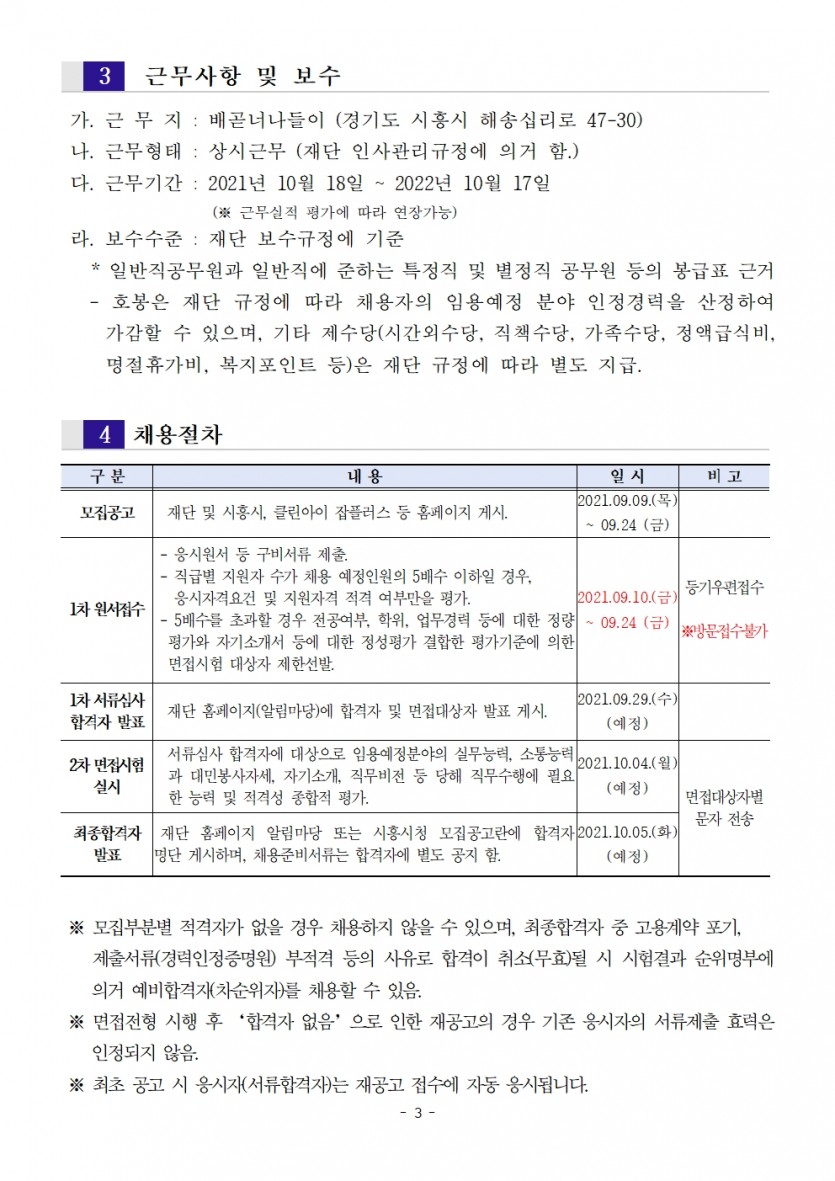 2021년 제3회 직원 공개채용 최종합격자 공고