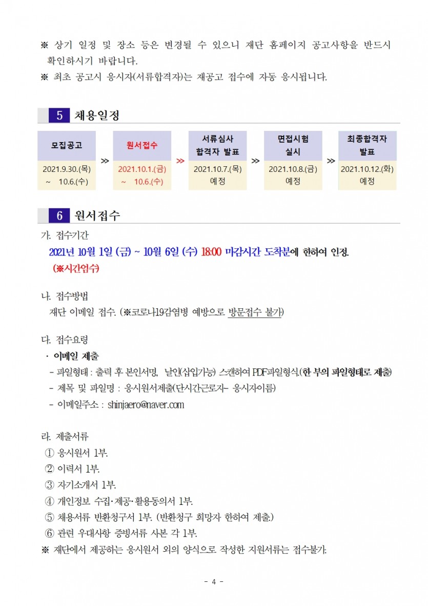 2021년도 제4회 직원 공개채용 서류심사 합격자 및 면접시험 대상자 등 공고