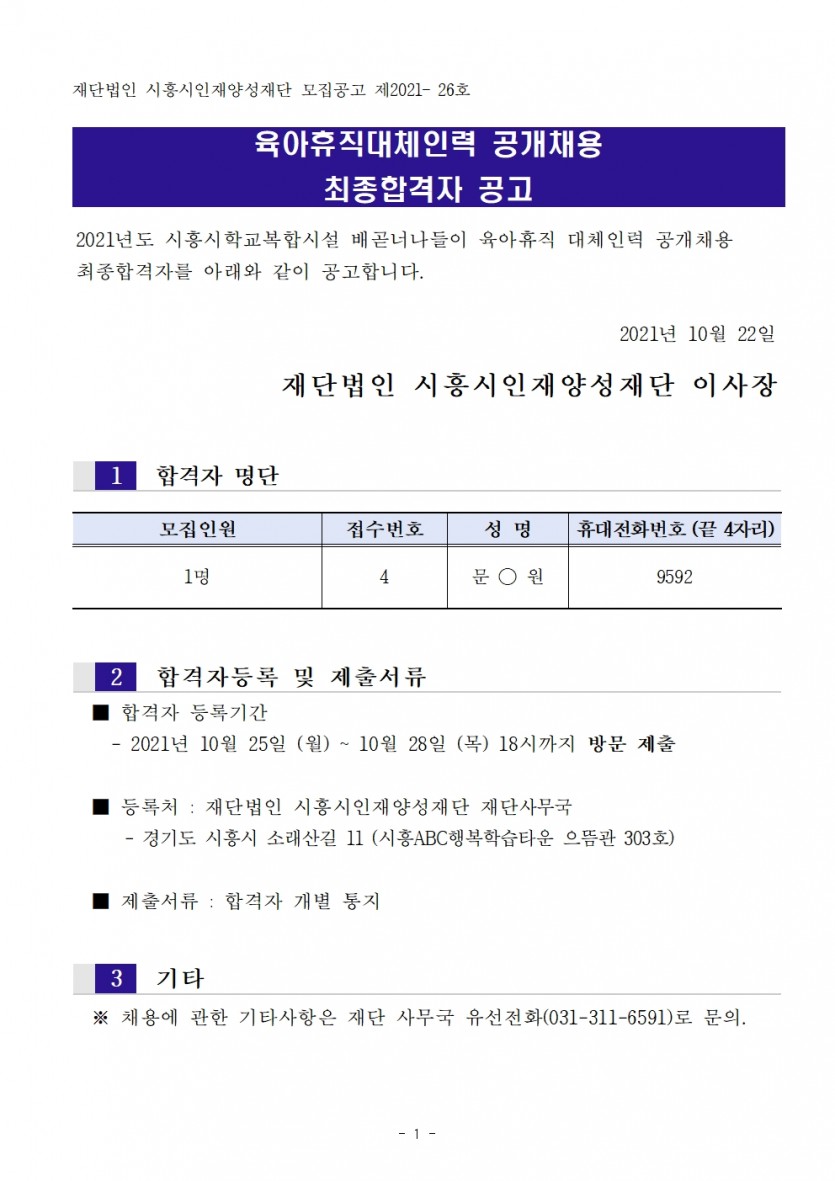 [채용] 2021년 제5회 직원 공개채용 최종합격자 공고