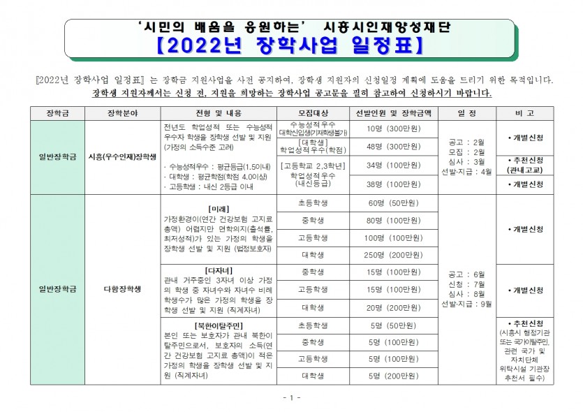 [공고] ★ 2022년 장학사업 일정 안내