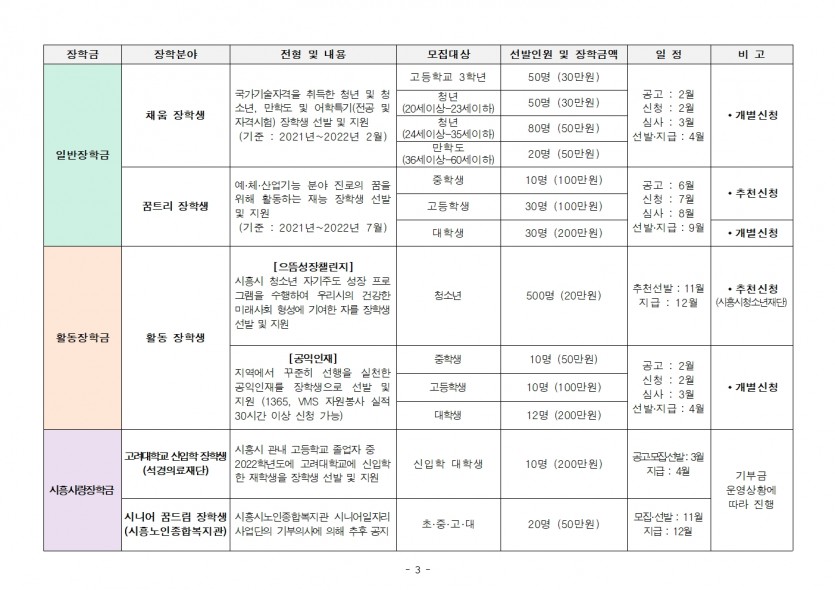 시흥시 관내 장학소개 게시판