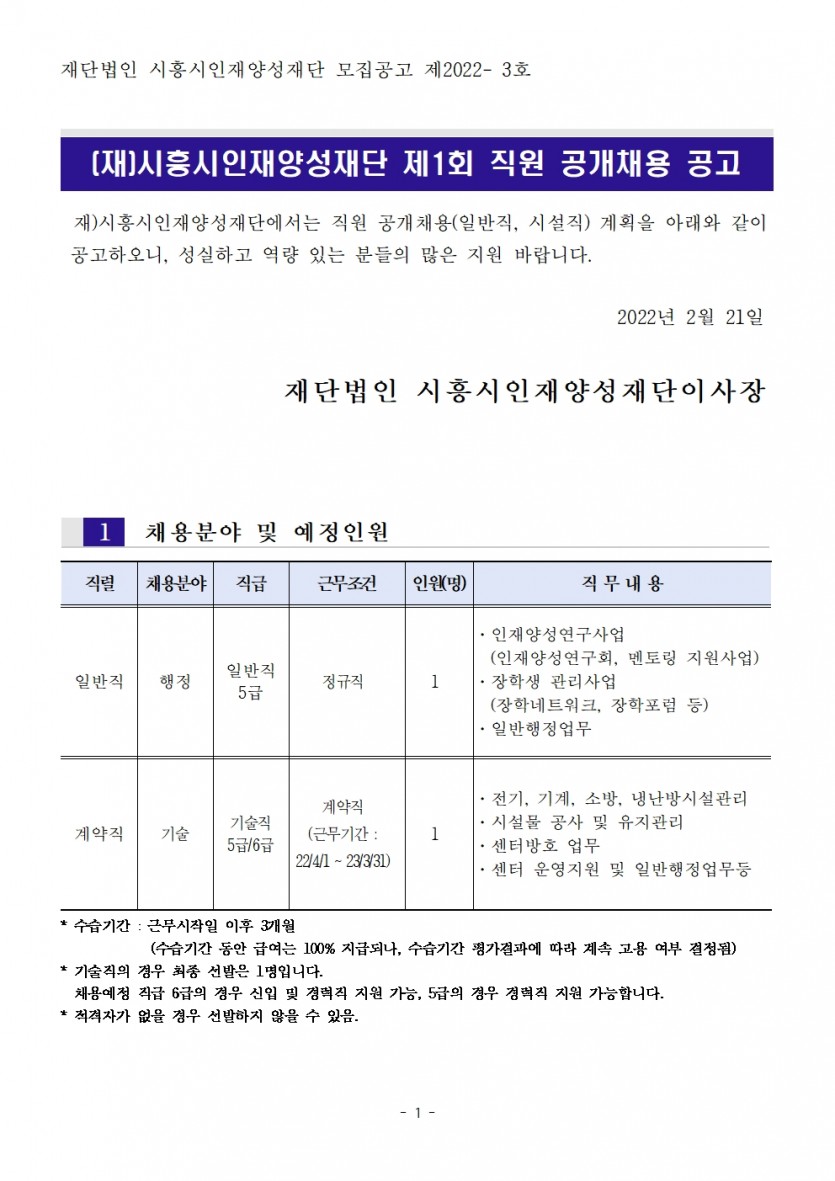 [채용] 2022년 제1회 직원 공개채용 (수정)공고