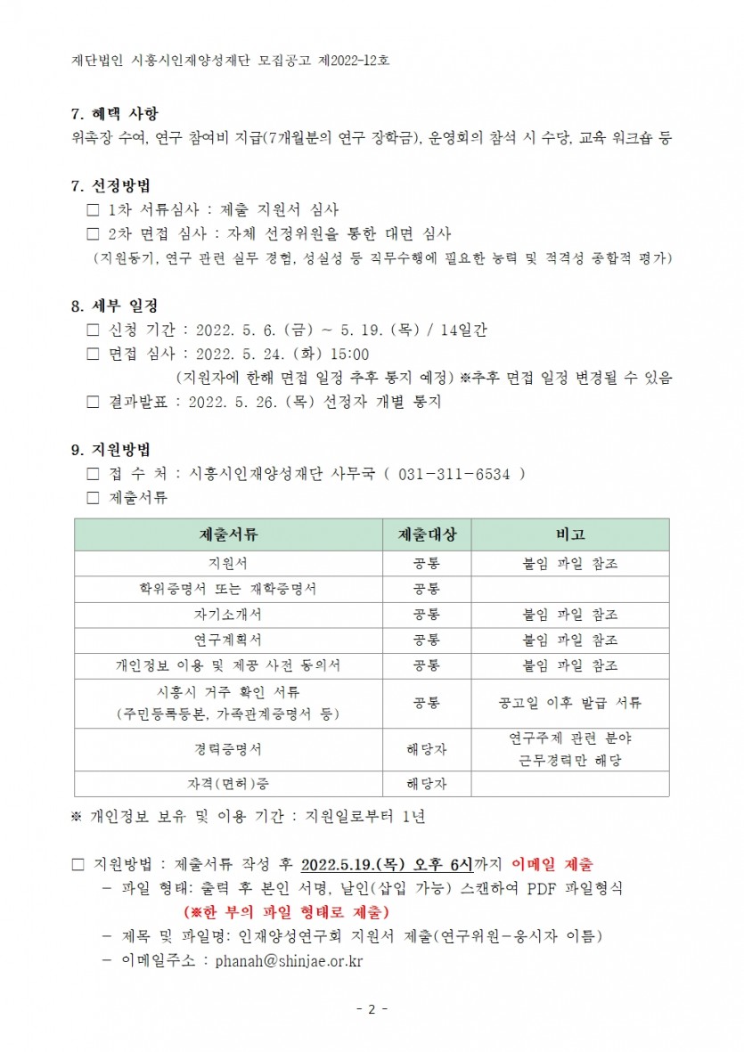 [공고] 인재양성연구회 장학연구위원 추가모집 공고