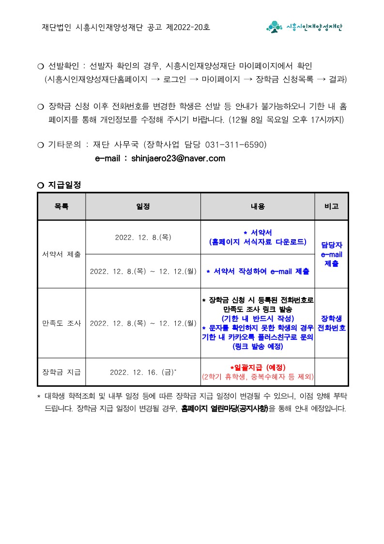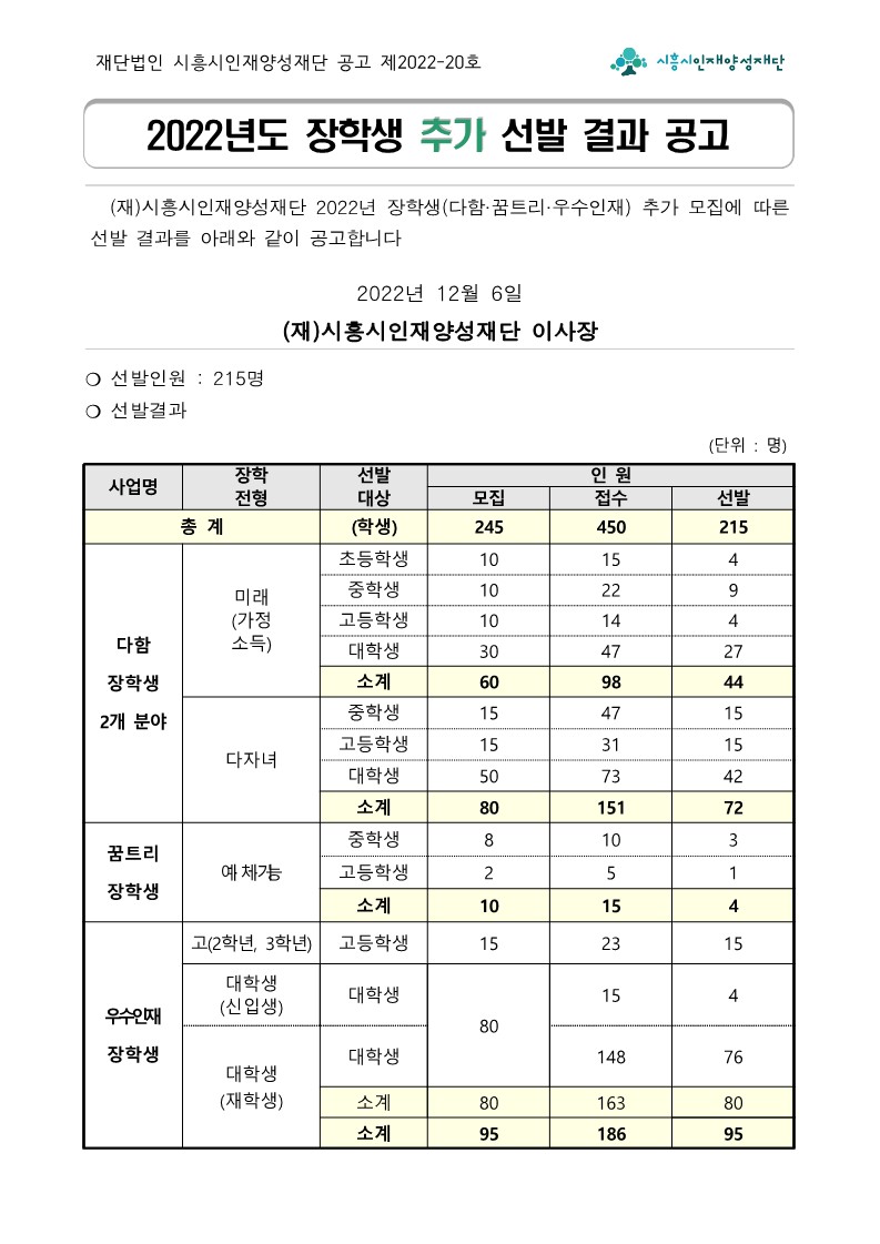 [공지] 2022년도 장학생 추가 선발결과 공고