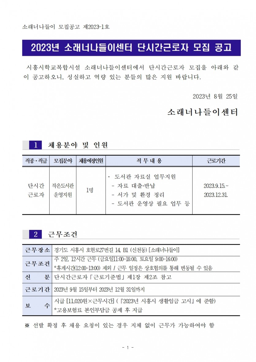 2023년 소래너나들이 단시간 근로자 모집 공고문.pdf