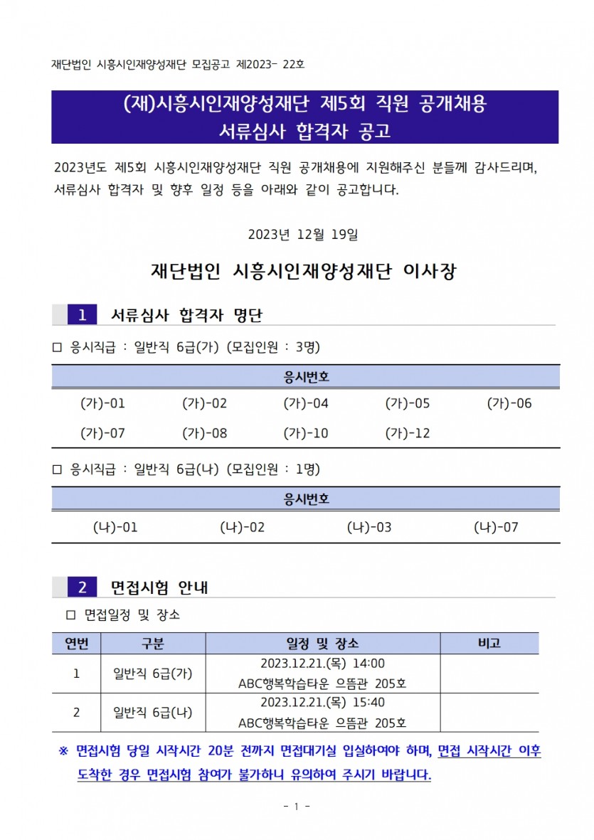 [채용] 2023년 제5회 직원 공개채용 서류심사 합격자 공고