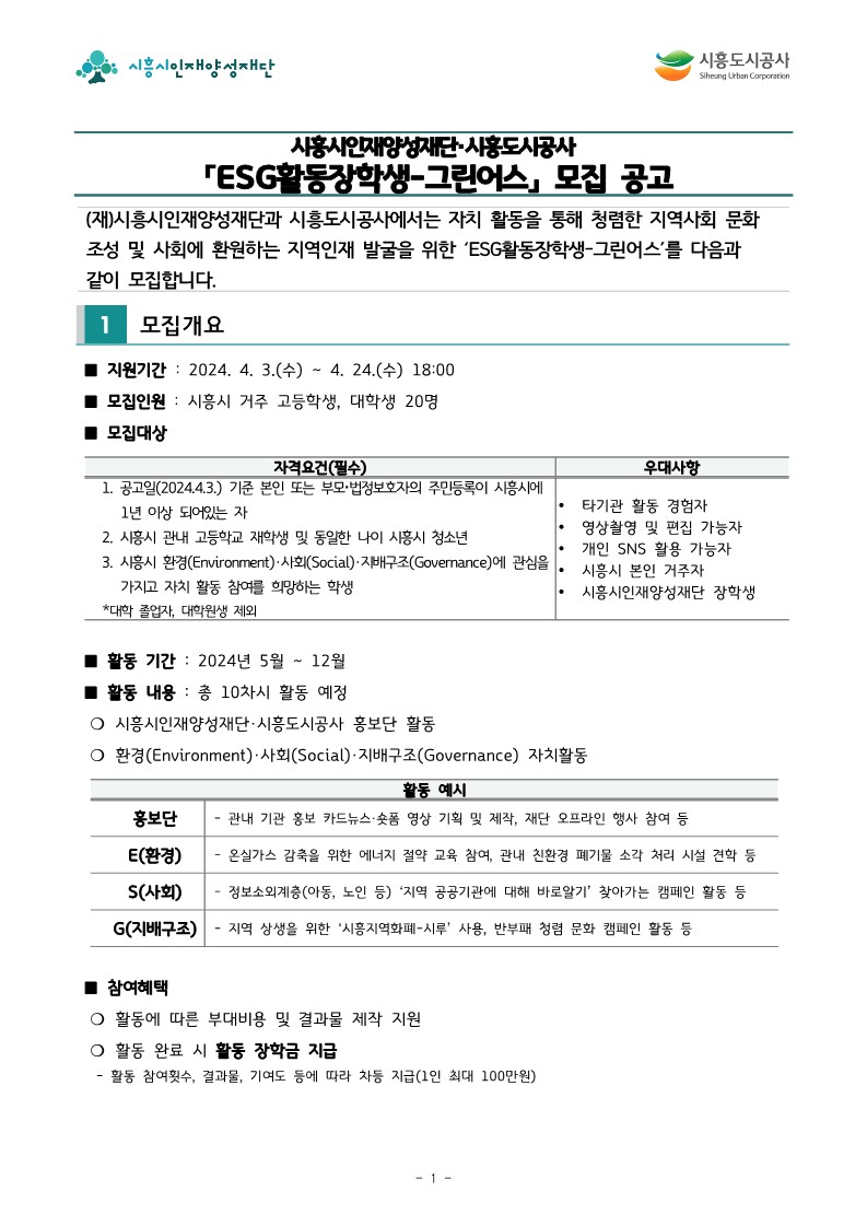 (재)시흥시인재양성재단 2024년 ESG활동 장학생 모집 공고.pdf