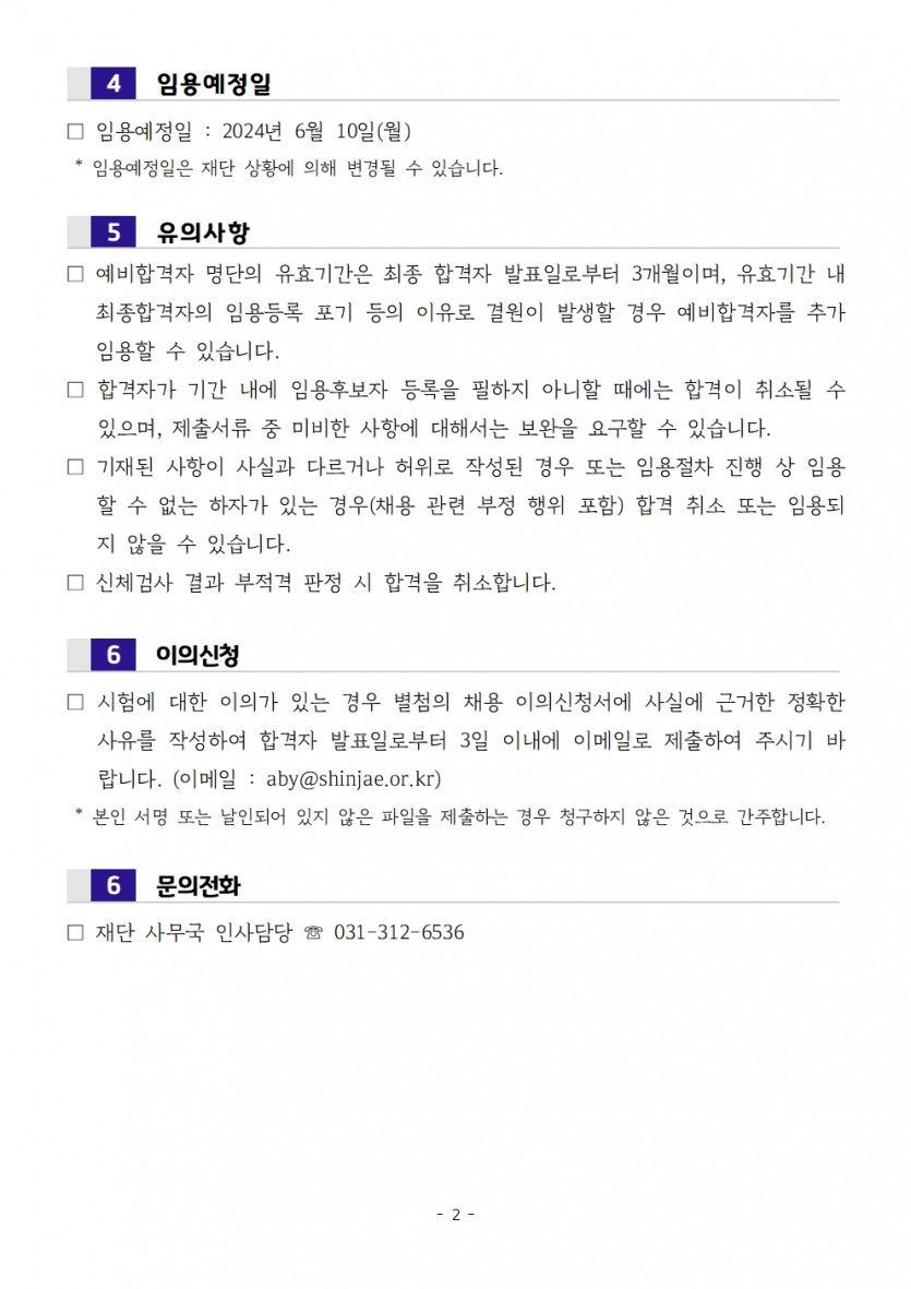 [채용] 2024년 단시간근로자 모집 최종합격자 공고