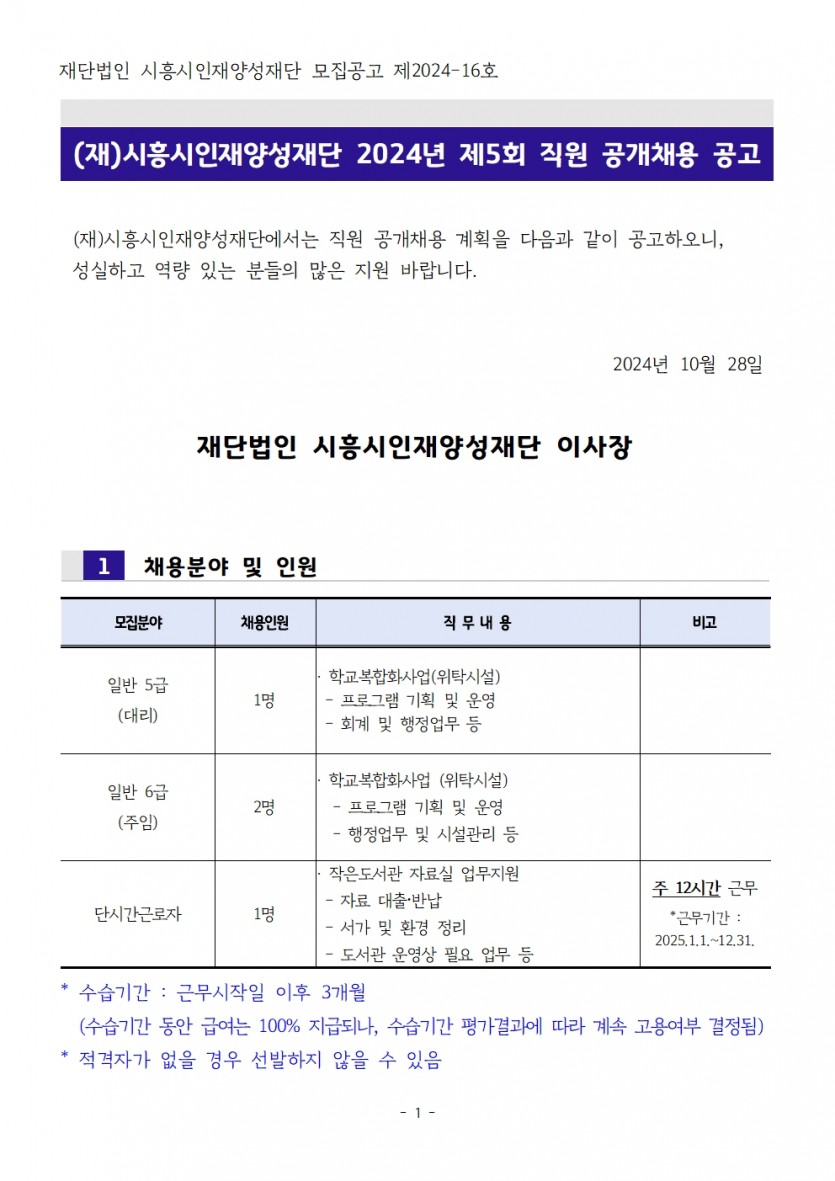 2024년 제5회 직원 공개채용 서류심사 합격자 공고