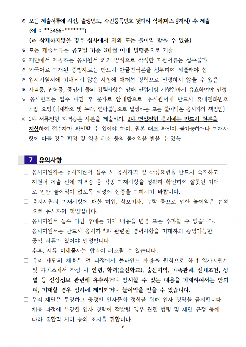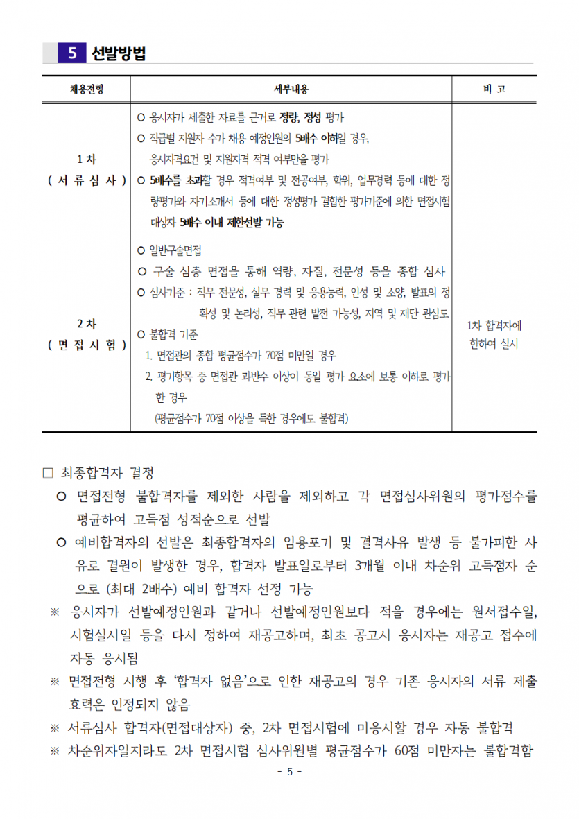 2025년 제1회 직원 공개채용 서류심사 합격자 공고