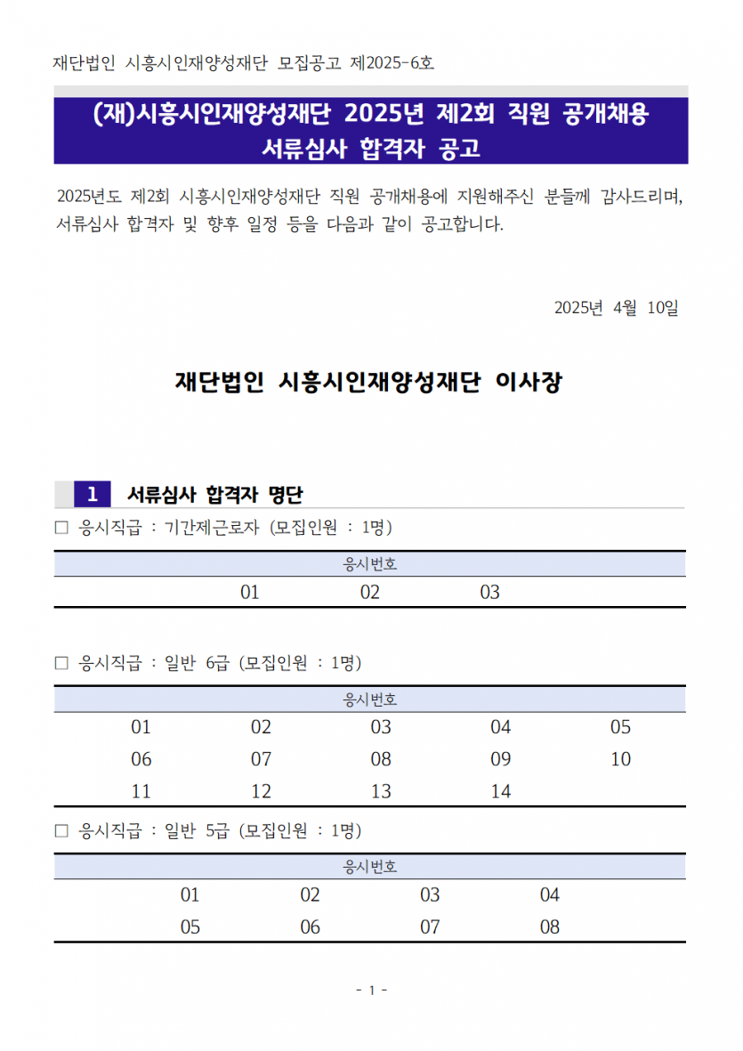 [채용] 2025년 제2회 직원 공개채용 서류심사 합격자 공고