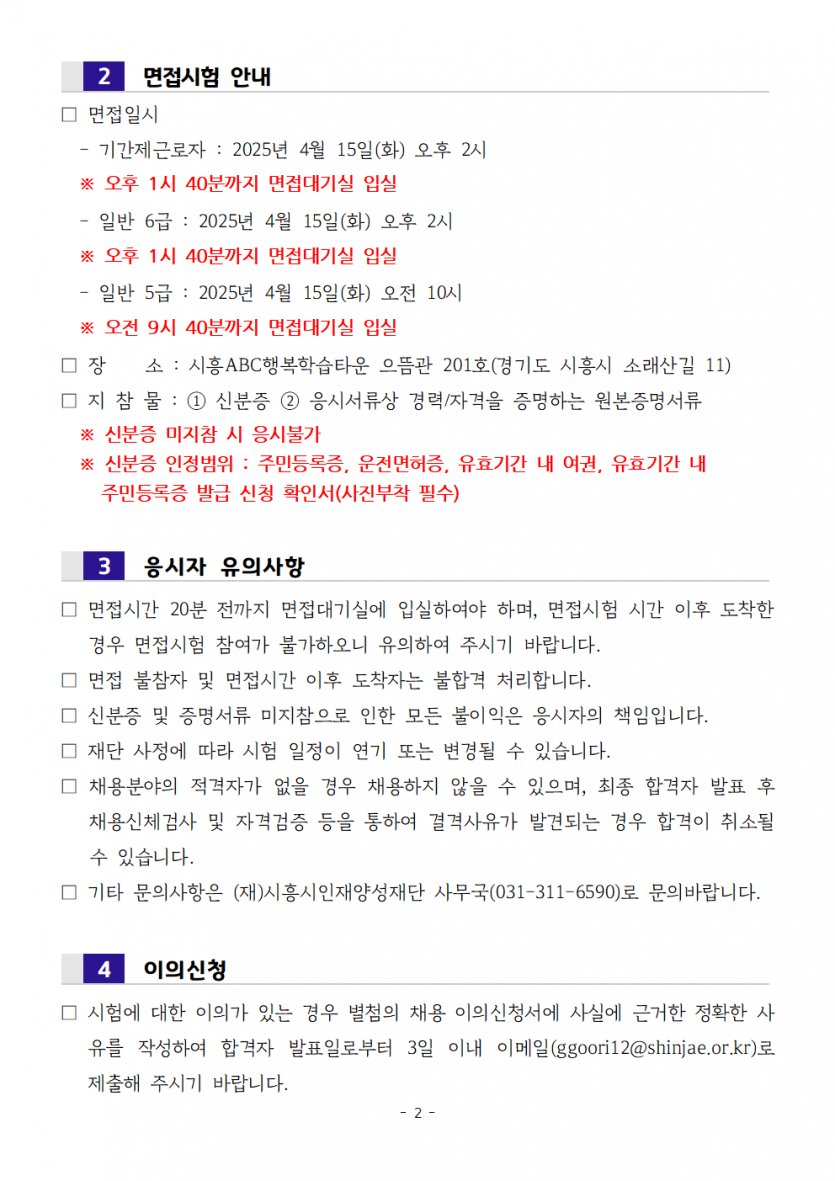 2025년 제2회 직원 공개채용 최종합격자 공고