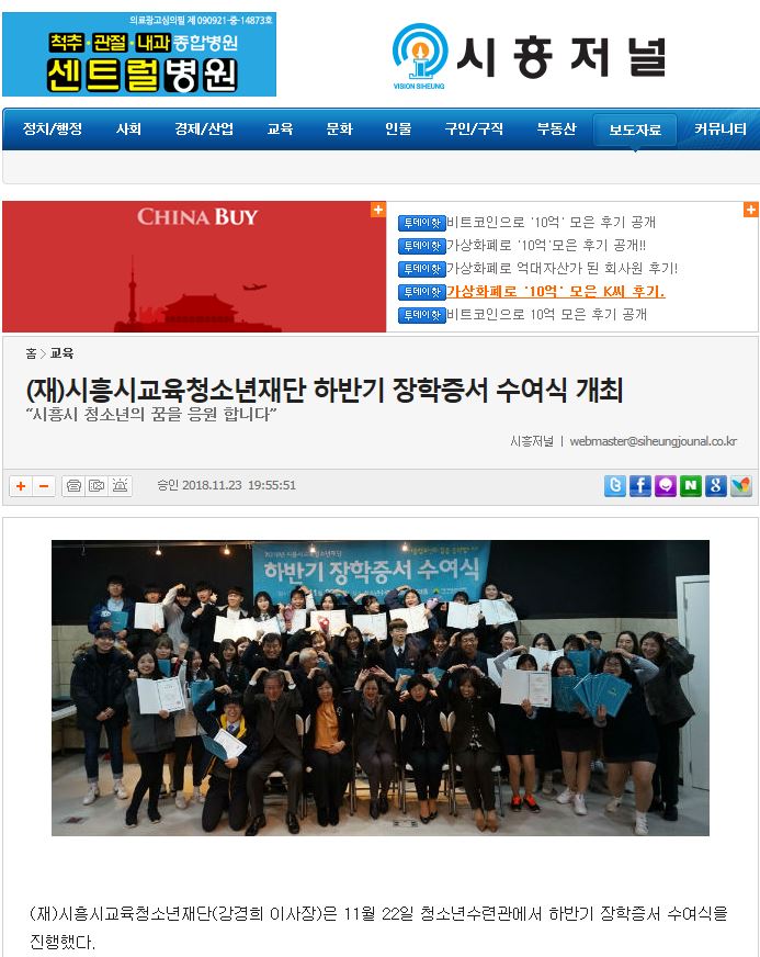 [언론] ▶기사 속 이야기◀(재)시흥시교육청소년재단 하반기 장학증서 수여식 개최(시흥저널)