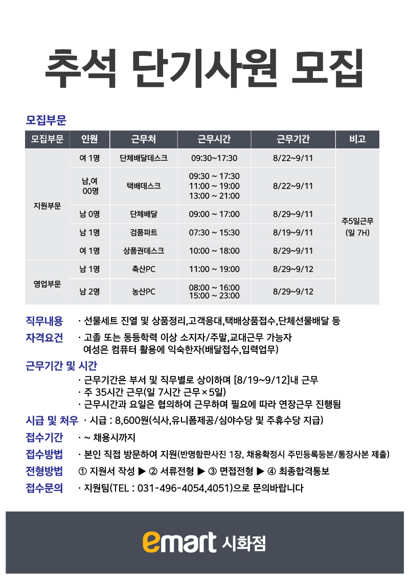 [공고] [Jop] (주)성담유통 (추석연휴)단기사원 추천모집